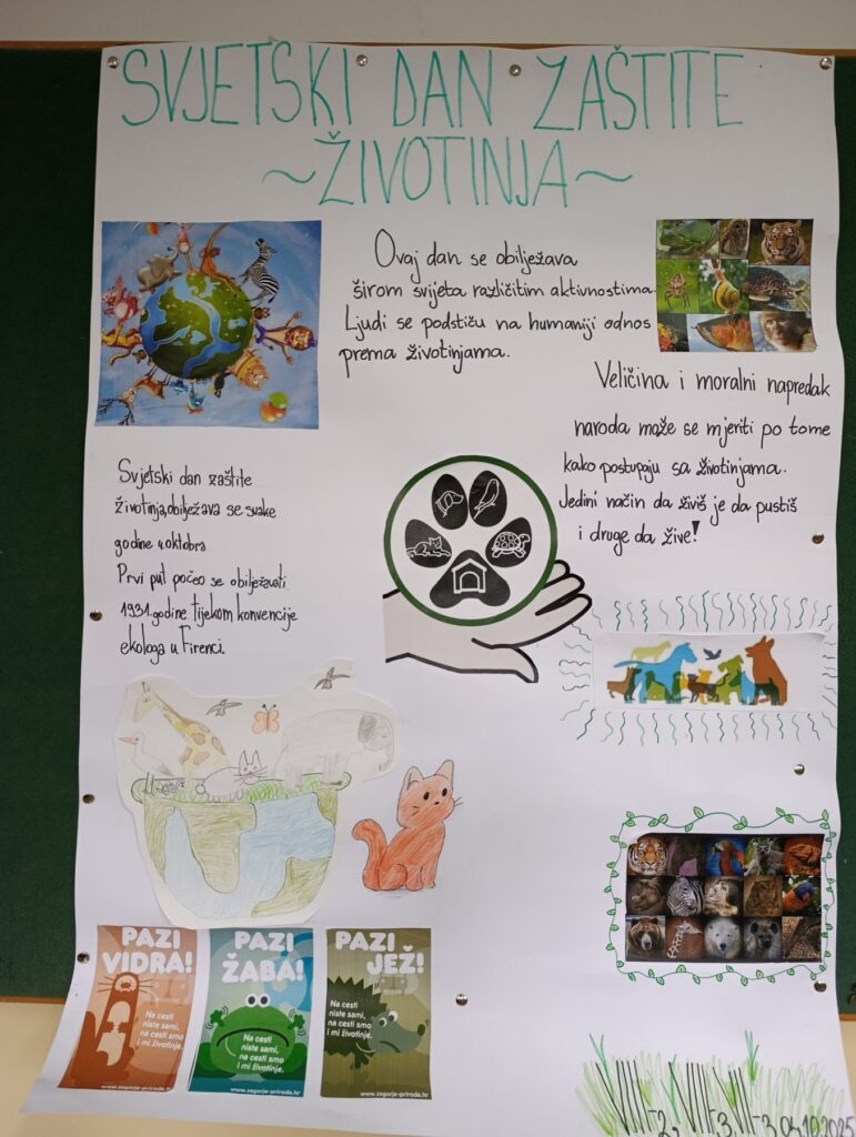 Učenici su izrađivali edukativne plakate, crtali likovne radove s motivima životinja te osmislili poruke koje potiču suosjećanje, brigu i zaštitu životinja.