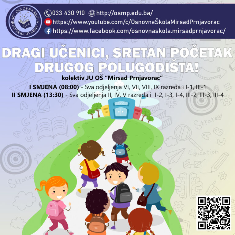 Drugo polugodište školske 2025/2026. godine počinje 29.01.2026. godine.