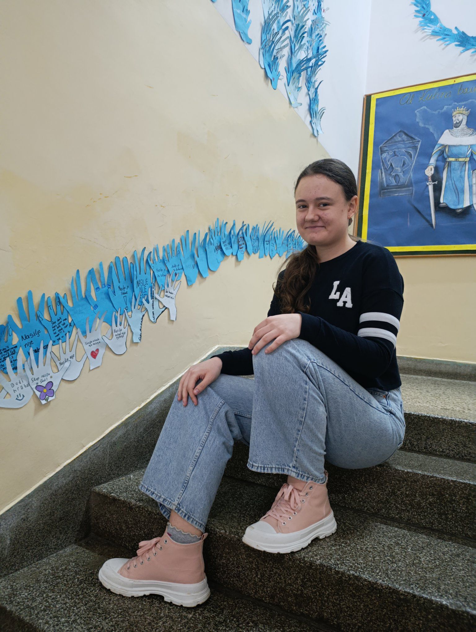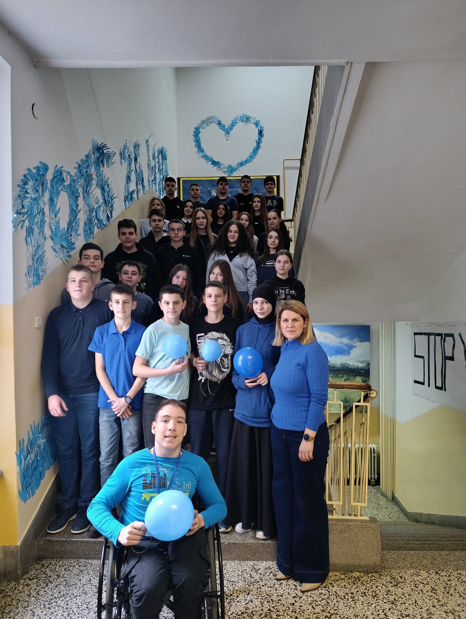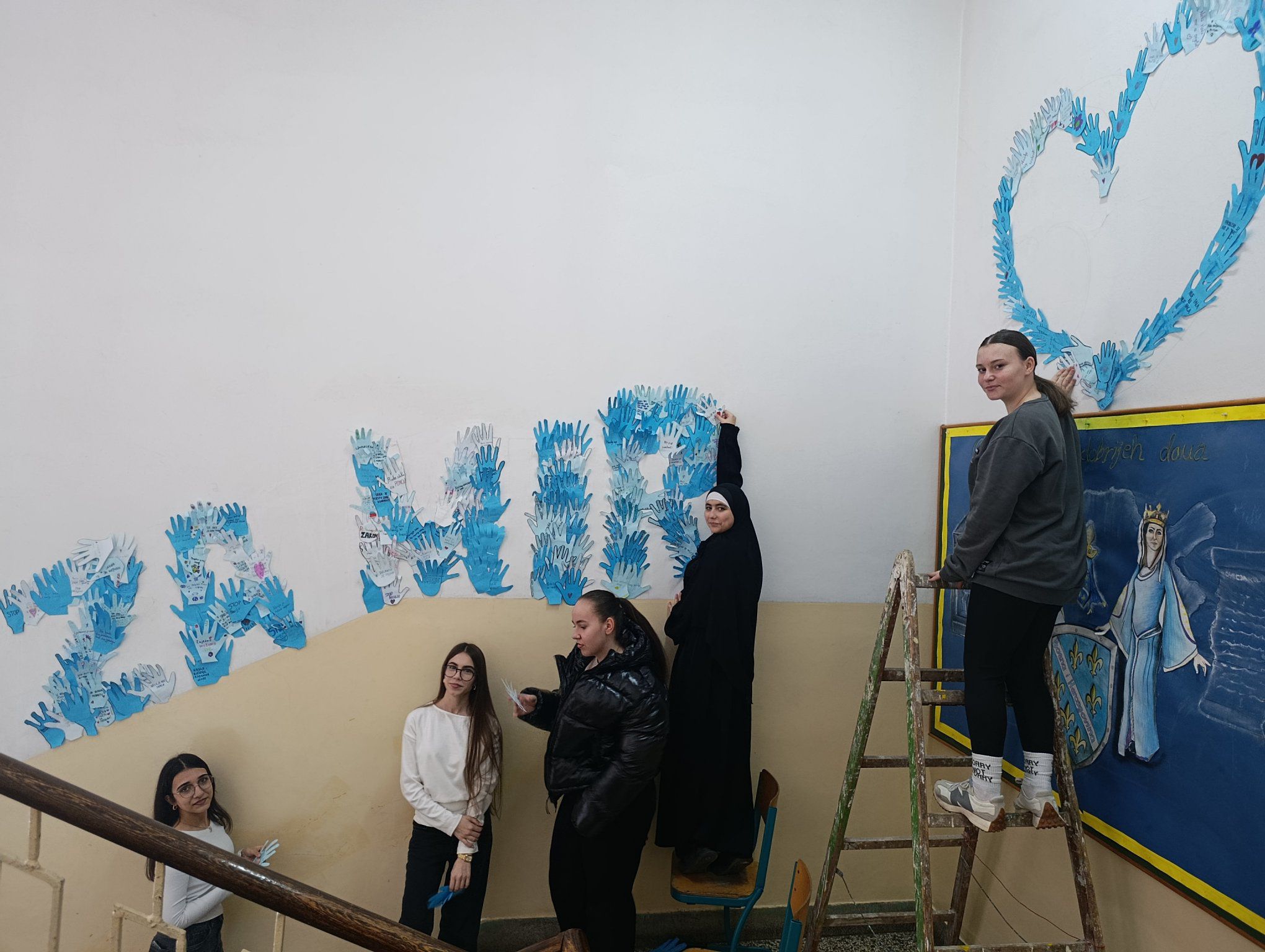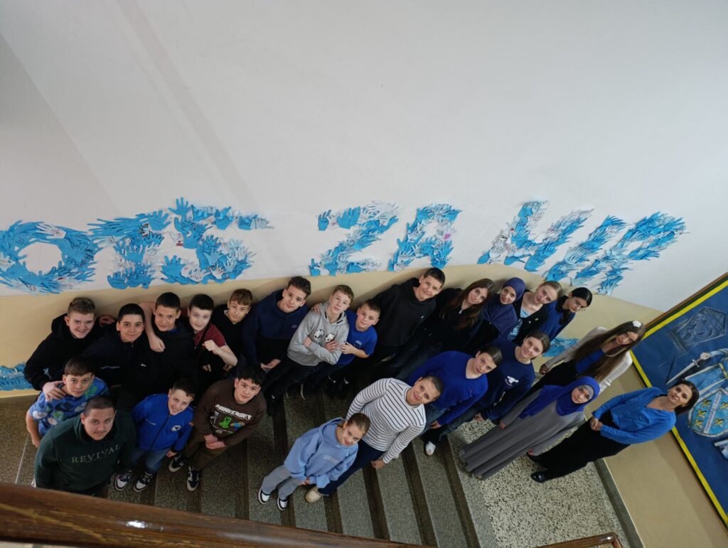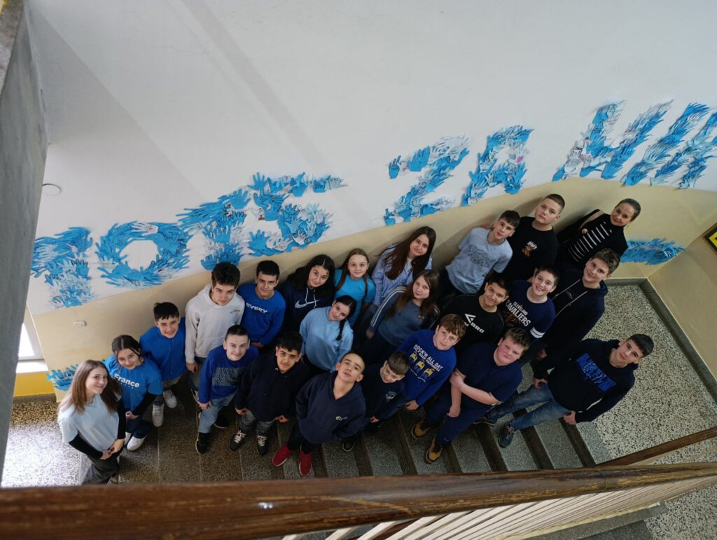 Na plavom papiru ocrtavali su obris svoje ruke, a unutar nje upisivali vlastite poruke prijateljstva, podrške i nenasilja. Od svih prikupljenih ruku nastao je školski mural s natpisom: