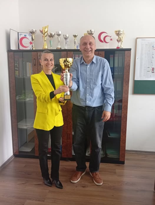 U povodu osvojenog 2. mjesta na 5. Malonogometnom memorijalnom turniru ,,Emir Švrakić Amidža” direktor škole Alem Kukić čestitao je ekipi naše škole i nastavnici tjelesnog odgoja Ameli Prnjavorac.
