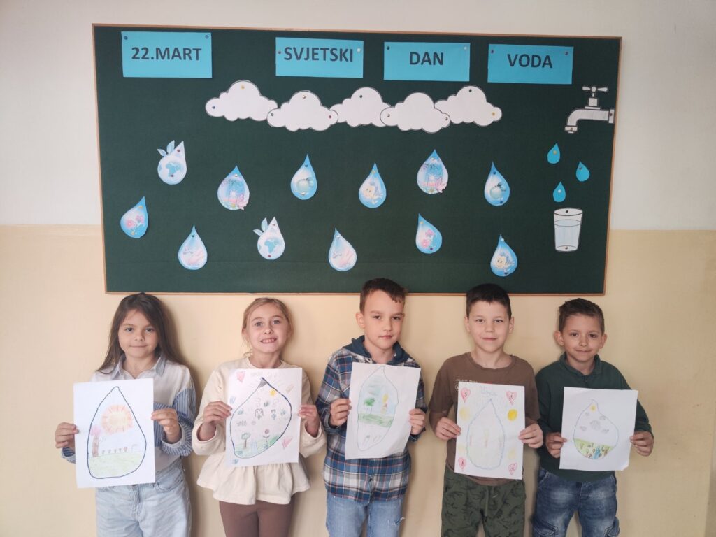 Učenici II-4 odjeljenja su uz pomoć učiteljice Neretljak Šejle na zanimljiv i kreativan način obilježili Svjetski dan voda. Kroz igru, razgovor, crtanje i izradu šarenih plakata učili su koliko je voda važna za život ljudi, biljaka i životinja.