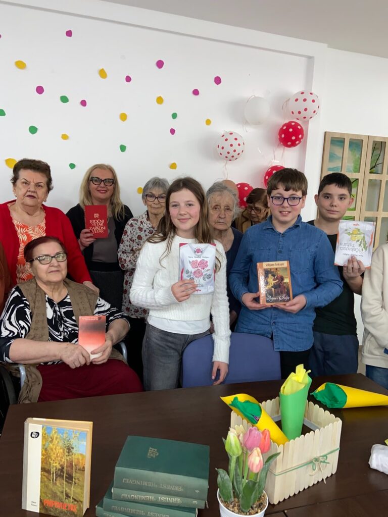 Svjetski dan dječije književnosti” članovi bibliotekarske sekcije naše škole 02.04.2026.godine obilježili su u Ustanovi socijalne zaštite ,,Park”‘ Vogošća. Uz nesebičnu pomoć zaposlenica Ustanove Maide Dedić, Belme Filipović i bibliotekarke naše škole Vesne Omeragić upriličena je radionica ,,Čitajmo zajedno” ! Zahvaljujući predivnim interpretacijama književnih djela Nure Bazdulj Hubijar, Williama Šekspira i Ernesta Hemingveja korisnici Ustanove su uživali zajedno s članovima sekcije. Saradnja naše škole i Ustanove socijalne zaštite ,,Park” Vogošća traje već dugi niz godina sa velikim zadovoljstvom i empatijom.